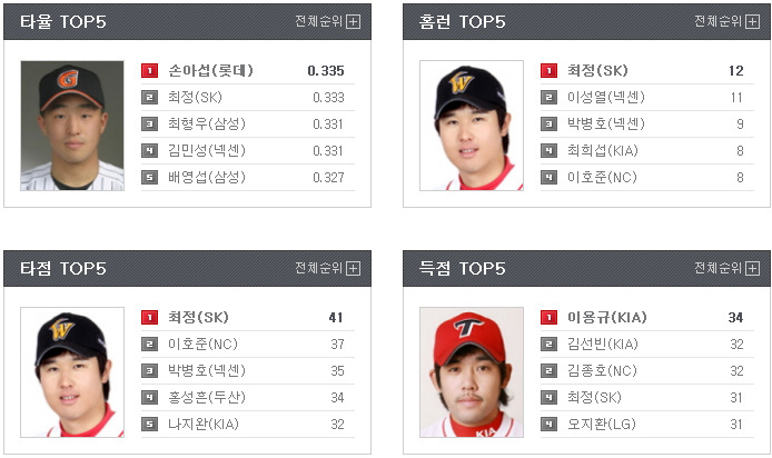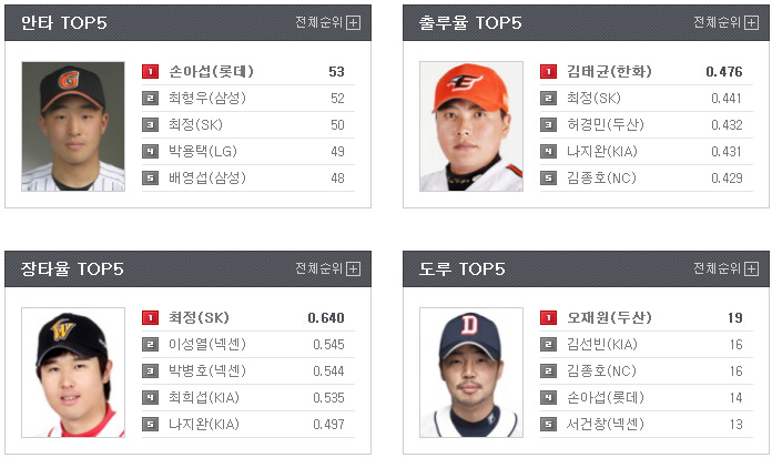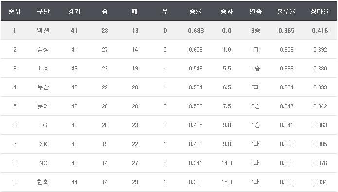LG랑 롯데는 팀분위기 반전에 성공한 것 같은데 두산, SK의 추락이 심상치가 않네요. 중위권 순위의 지각변동 조짐이 보입니다.