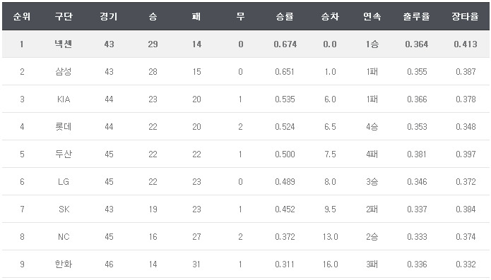 롯 기 두 엘 네팀의 진흙탕 3,4위 다툼 6월 시작부터 흥미진지하네요 크크크 하아... 설마 삼성 스윕당하는건 아니겠지... ㅠㅠ