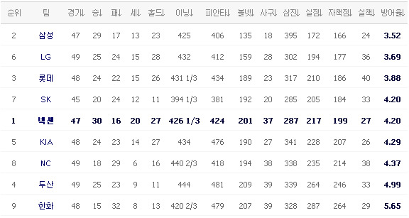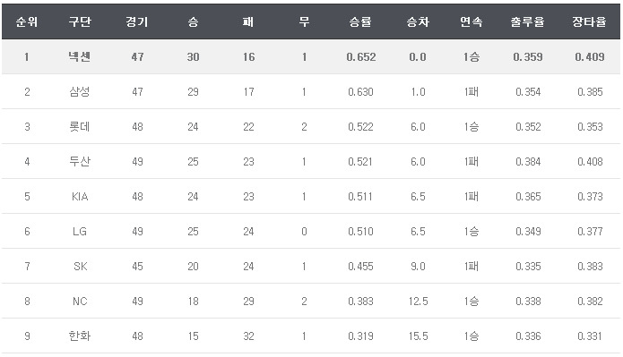 삼성은 전혀 선두권팀다운 경기력을 보이지 못하면서 반스윕을 당하면서 주중시리즈 가장 나쁜 성적을 가져가게 되었네요.