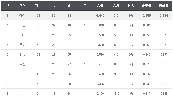성적도 감독에 대한 팬들의 지지도 바닥인 잠실 시리즈는 양 감독 데스매치 삘 나네요. 여기서 무너지는 팀은 신생팀 NC에 잡히는 위기가 올 지도 모르겠군요...