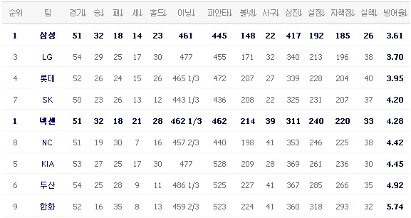 23승 1무 26패 (7위)  :  25승 1무 28패 (6위)