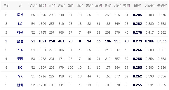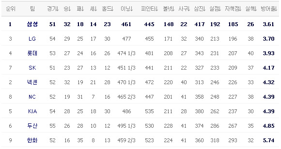 이번주 엘넥라시꼬 결과에 따라 잘~하면 엘롯기가 상위권에 포진할 수도 있습니다.