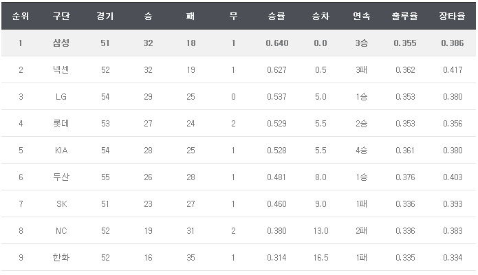 3위라는 익숙치 않은 자리에서 엘지밑에 있는게 어색한 팀들의 추격을 받다니 참..