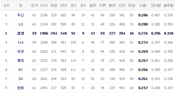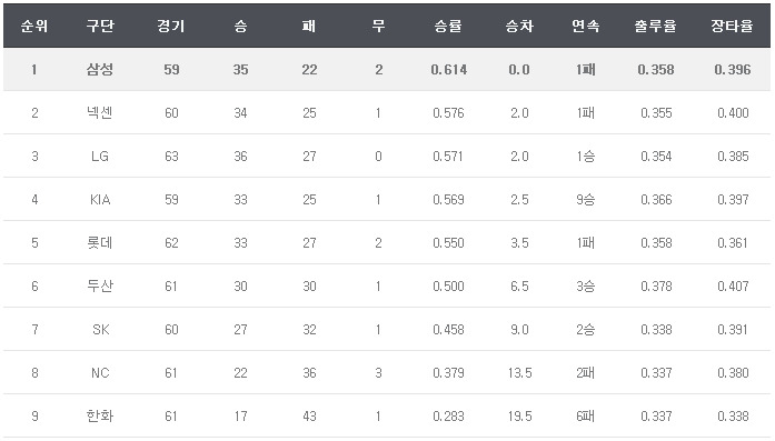이렇게 되면... 저의 미천한 야구지식으론 이번주 주말에 두팀과 맞붙는 삼성과 NC는 웃고 있겠네요.. 게다가 광주에서 창원, 대구면.. 어마어마한..