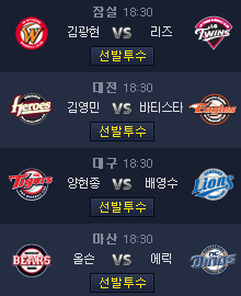 김영민 (2승 3패  3.73)                                                                                 Denny Bautista (5승 5패  4.06)
