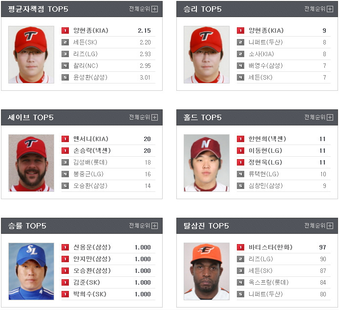 양현종 (9승 1패  2.15)                                                                                            국영수 (7승 2패  4.54)