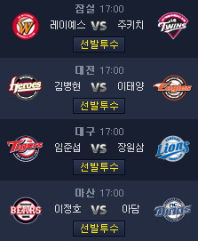 [넥센 5 (7회말) 0 한화] [KIA 1 (5회말) 10 삼성] [두산 4 (6회초) 8 N C]