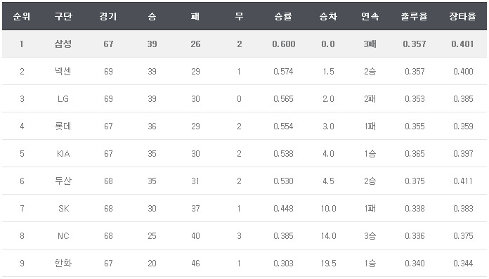 8연패 할때만해도 탑성을 위협할 팀은 엘지뿐이라 생각했는데 넥센이 다시 치고 올라오는군요. 겁나네요.