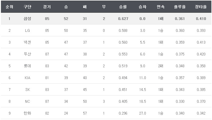 이 경기 승리로 순위가 바뀌었습니다. 두산3위 넥센4위... 다른 구장 경기도 잘 마무리되길 바랍니다. 내일 불판에서 다시 뵈요~!