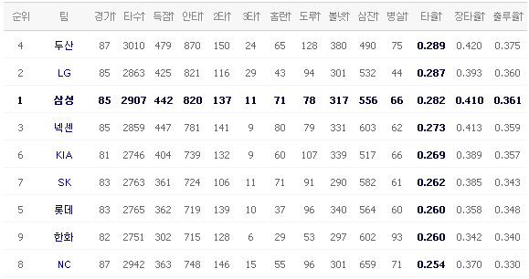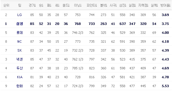 불펜 방어율이 극인 두팀을 봐서, 엘지의 선취점은 매우 유리한 고지입니다.