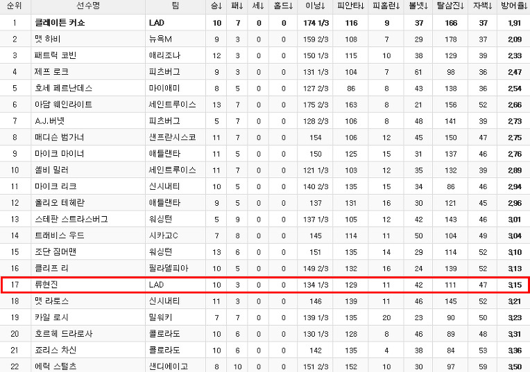 다승이 의미가 적기도 하고 과거보다는 중여하지 않은 스탯으로 보이긴 합니다만 여전히 에이스의 척도를 파악할때 다승은 중요한 스탯이라고 생각합니다. 오늘 류현진이 승리투수가 되면 팀내 다승 선두가 됩니다. 크크크 리그 선두팀 에이스!!!