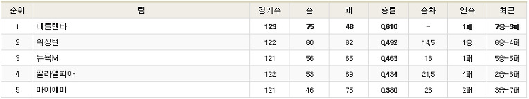 - 구단별 순위 -