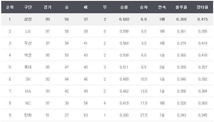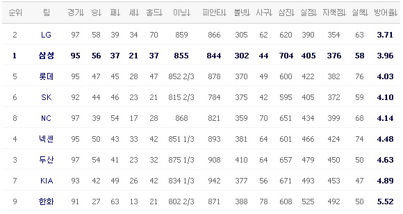 삼성 지면 1위 두산 져서 3위와 격차 벌리고 부담스런 넥센에게 패주고 롯데가 넥센 추격하면 엘지에겐 최고의 하루네요 크크