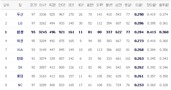 타격왕도 물건너가는 분위기에 1위 수성도....