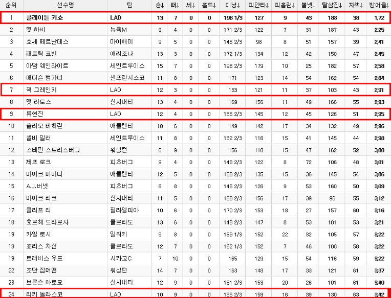 그나저나 커쇼를 보여주는데 다시 한 번 느끼는 커쇼의 위엄이네요.. 랜디 존슨 보다 더 뛰어나다는 평을 받을 정도니..