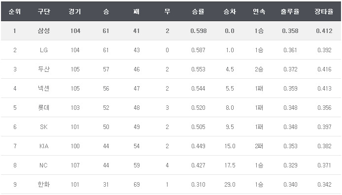 그리고 이상열 요즘 많이 불안해서 사직 성적이 의미가 있나 모르겠네요. 사직 6할이라던 박용택도 어제 오늘 메롱이라..