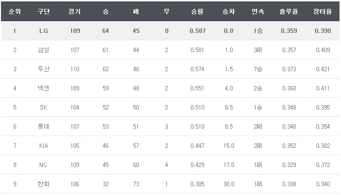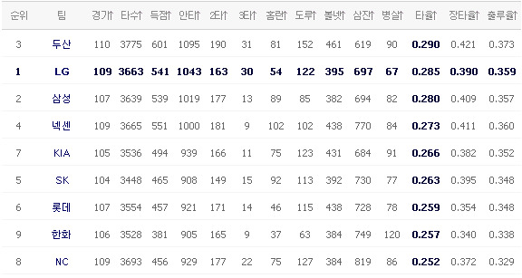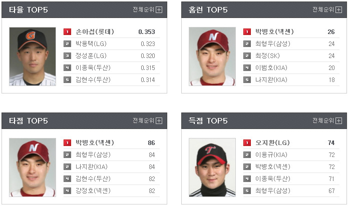 선수층 정말 두텁습니다. 야수는 정말 크보 최강이네요