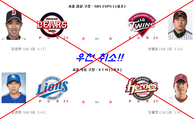 무와 콜라만 온 느낌이네요 -_-;; 콜라는 7위 싸움 ;; 어쨌거나 이번 우취는 엘지와 삼성에게 유리할것 같습니다. 엘지는 신정락이 빠진 선발로테이션의 여유를 갖고 두산이 넥센전을 제쳐두고도 타겟팅했던 선발 전략이 무효화 되었죠. 삼성은 넥센에게 원래 약한 것도 있지만, 장원삼을 계투로 뺀 구멍과 오늘 출장이 불분명했던 배영섭, 후반기 복귀 예정인 채태인이 있기에 잔여경기가 더 낫죠. 잔여경기 일정 추가로 인해 엘지의 9월 28, 29, 30일 일정은 넥삼두네요. 중요도 높은 경기가 막판 연전이 되서 조금 피곤해진거 같기도 합니다. ;;