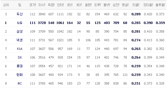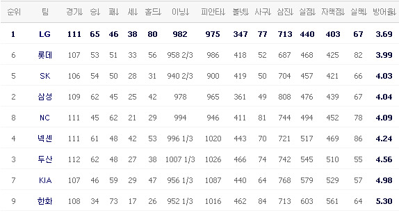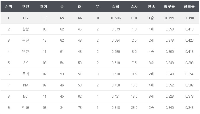 이제 NC랑 기아랑 한 경기 차이죠?