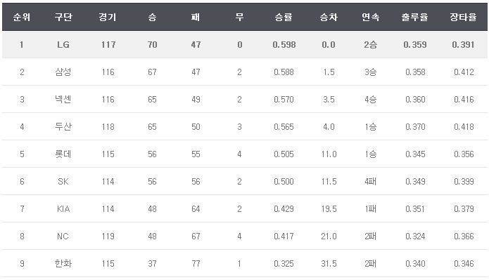 우규민만 불쌍하네요. 경기는 경기대로 지게 생겼지, 실책성 플레이 두 개가 전부 안타로 기록되어 자책점은 자책점대로 늘어났지.. 아무리 외야는 실책 잘 안 준다고 해도 글러브에 맞은 타구를 안타를 주는 건 좀 아니지 않나..