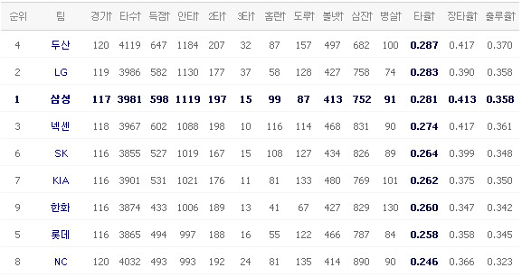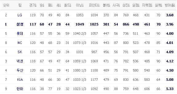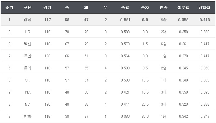어제 두산이 엘지를 잡아서 다시 1위로 올라갔네요