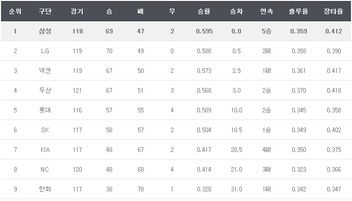 순위 확정되고 난 후 페이스 조절과 실험용 라인업같은 생각이 드네요. 한 경기 한 경기가 참 중요한데 말이지요. 1. 외야 과부하를 막기 위한 최근 실전감각 부족한 라뱅의 수비기용 2. 오지배의 수비 안정을 이끈 손주인 대신 야잡죽 또치의 2루 기용 (오늘 오지배 실책을 예상해봅니다.) 3. 타격왕 규정타석 때문인가? 라뱅 3번 기용 4. 정주현 기용까진 괜찮은데, 2번은 위험성이 있는 것 아닌가? 다른 감독들이 무리수를 던질때, 장기 페이스를 위한 김감독의 페이스 조절에 지지하는 편이었는데.. 요새는 정말 이해하기 힘드네요. 그냥 준플옵 준비 중인가? -_-