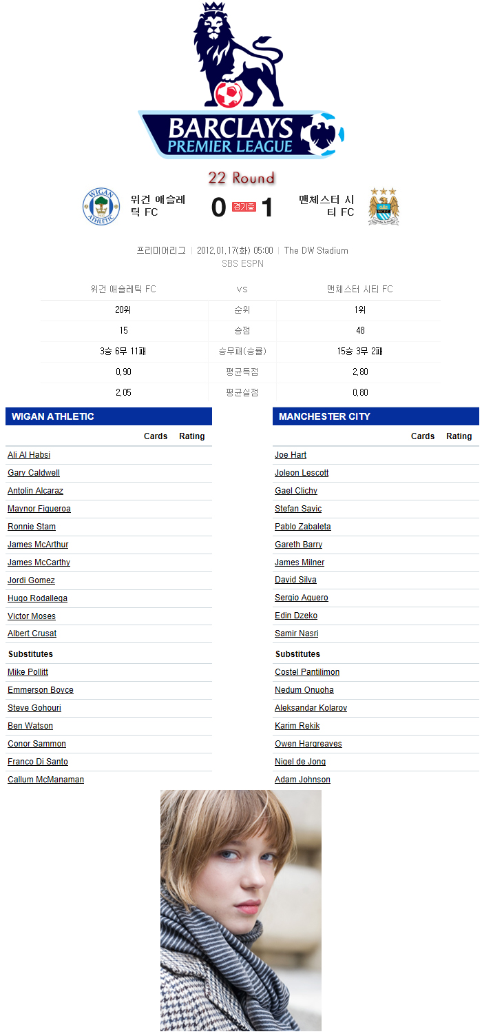 702 [EPL 22R] 위건 vs 맨시티! [147] 자제해주세요2234 12/01/17 2234