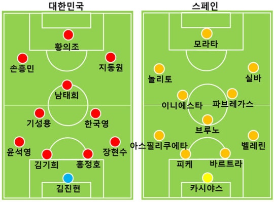 스페인이 4골 이후부터는 정말 느슨하게 하는 것이겠죠. 5골 먹힌 이후의 우리나라의 경기력은 의미가 없는 것 같습니다.