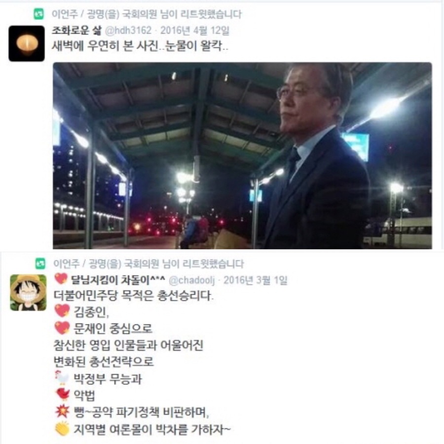 실제로 이언주는 총선은 더민주 간판달겨 문마케팅으로 당선됐고 그뒤론 내부총질러했구요. 미친거같은데 이건....