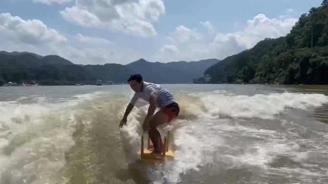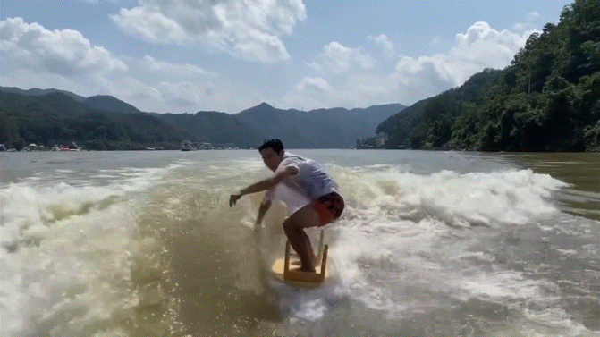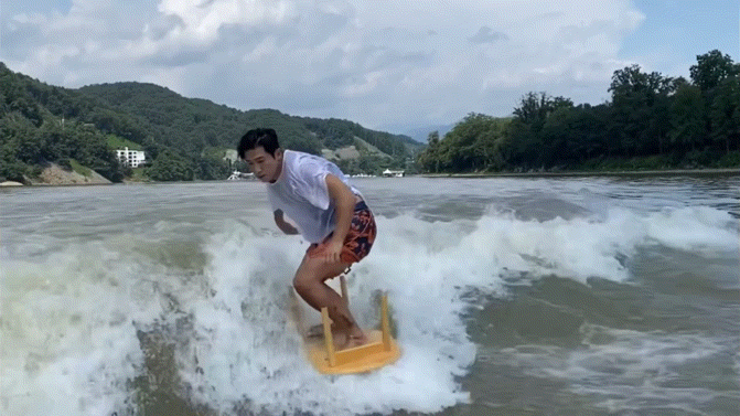 ??? 이게 왜 진짜?? 진짜 대단한 균형감각이네요 크크 그나저나 이거는 바다 서핑과 달리 개고생해서 팔 젓지 않아도 되고 좋네요