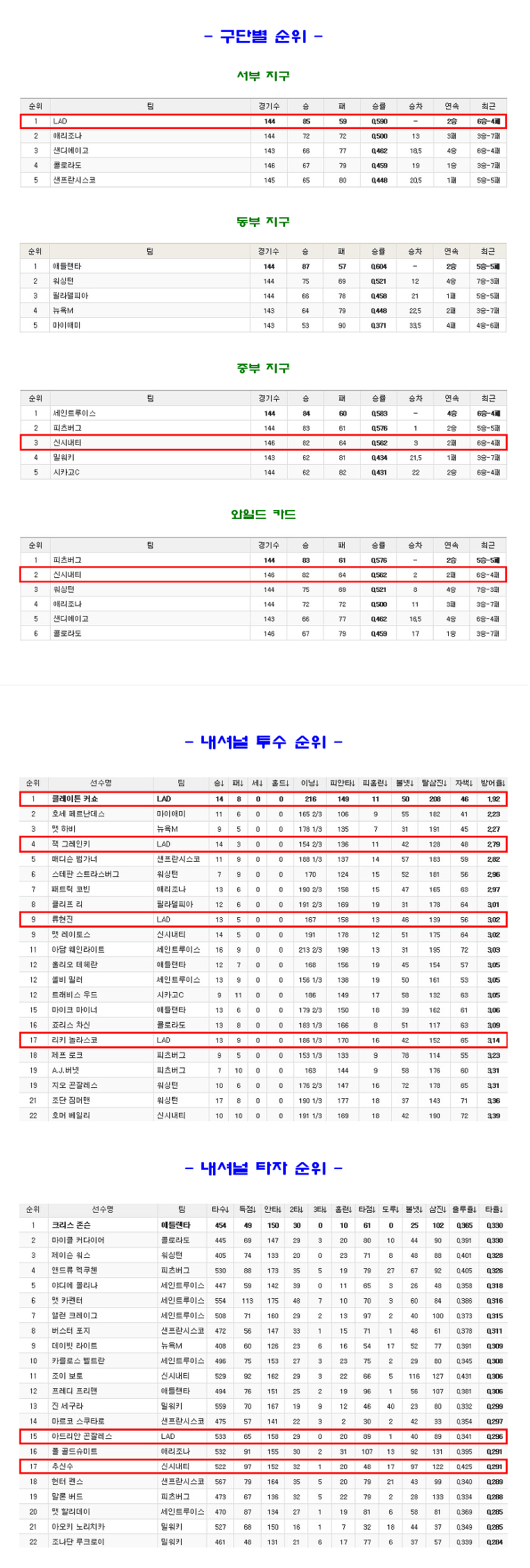 답 없는 리그가 윌슨으로 교체되네요. 리그 실력도 없는 주제에 마이너 안 가는 옵션이 있어서 로스터 한 자리만 축냈었는데 얠 마이너로 내리고 다른 선수가 로스터에 있었으면 다저스는 지금보다 승률 훨씬 높았을거 같네요